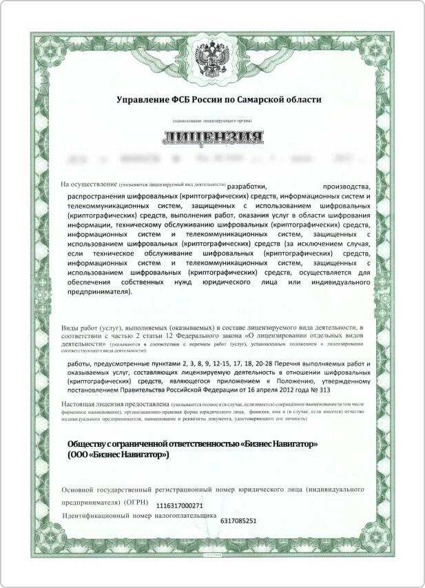 Лицензия ФСБ